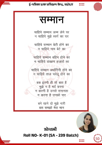 ई-प का डाक श ण क , वडोदरा े सोनाली Roll NO- K-01 (SA - 239 Batch) 50