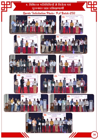 8. िविभन्न गितिविधय मे िवजेता एव ं पुरस्कार प्राप्त प्रिशक्षणाथ Sports Felicitation Photo- PA Batch-250 38