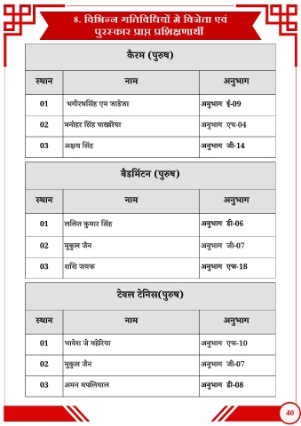 8. िविभन्न गितिविधय मे िवजेता एव ं
