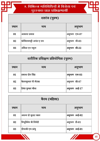 8. िविभन्न गितिविधय मे िवजेता एव ं