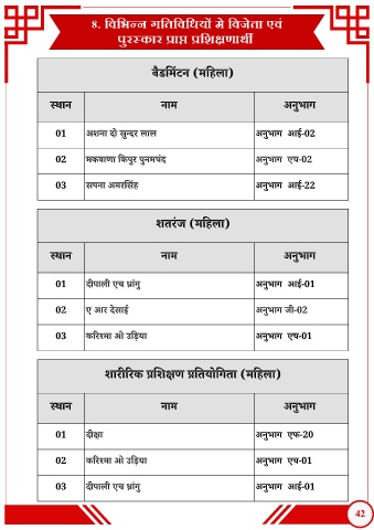 8. िविभन्न गितिविधय मे िवजेता एव ं