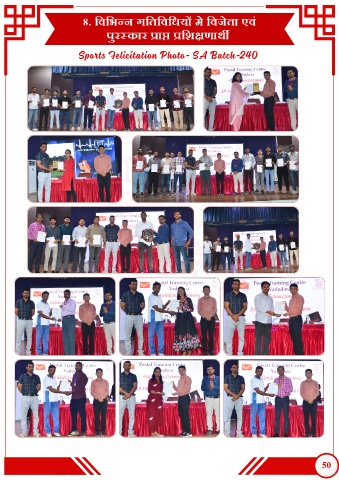 8. िविभन्न गितिविधय मे िवजेता एव ं पुरस्कार प्राप्त प्रिशक्षणाथ Sports Felicitation Photo- SA Batch-240 50