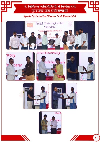 8. िविभन्न गितिविधय मे िवजेता एव ं पुरस्कार प्राप्त प्रिशक्षणाथ Sports Felicitation Photo- PA Batch-251 51