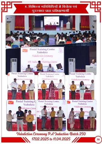 8. िविभन्न गितिविधय मे िवजेता एव ं पुरस्कार प्राप्त प्रिशक्षणाथ Valediction Ceremony PA Induction-Batch 250 17.02.2025 to 11.04.2025 58