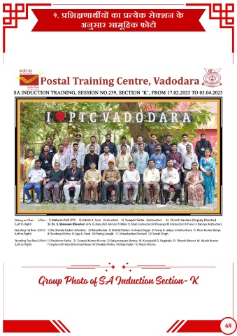 9. प्रिशक्षणाथ य का प्रत्येक सेक्शन क े अनुसार सामूिहक फोटो Group Photo of SA Induction Section- K 68