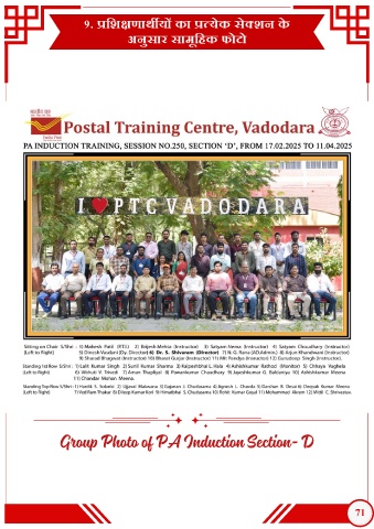 9. प्रिशक्षणाथ य का प्रत्येक सेक्शन क े अनुसार सामूिहक फोटो Group Photo of PA Induction Section- D 71