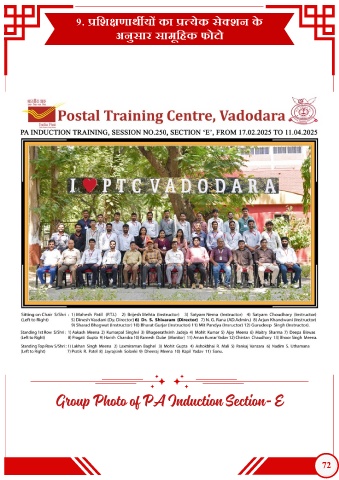 9. प्रिशक्षणाथ य का प्रत्येक सेक्शन क े अनुसार सामूिहक फोटो Group Photo of PA Induction Section- E 72