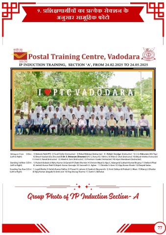 9. प्रिशक्षणाथ य का प्रत्येक सेक्शन क े अनुसार सामूिहक फोटो Group Photo of IP Induction Section- A 77