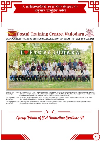 9. प्रिशक्षणाथ य का प्रत्येक सेक्शन क े अनुसार सामूिहक फोटो Group Photo of SA Induction Section- H 81