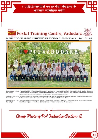 9. प्रिशक्षणाथ य का प्रत्येक सेक्शन क े अनुसार सामूिहक फोटो Group Photo of PA Induction Section- E 84