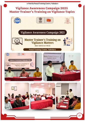 e-Patrika Postal Training Centre, Vadodara Vigilance Awareness Campaign 2025 Master Trainer’s Training on Vigilance Topics 27