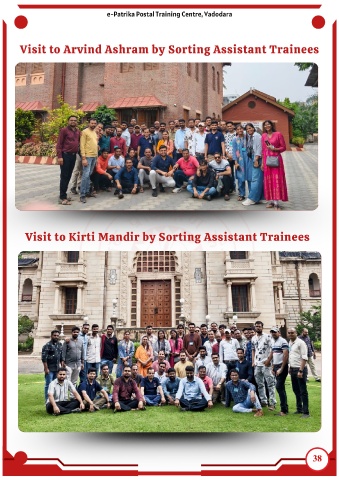 e-Patrika Postal Training Centre, Vadodara Visit to Arvind Ashram by Sorting Assistant Trainees Visit to Kirti Mandir by Sorting Assistant Trainees 01 01 38