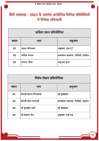 हदी पखवाड़ा - 2025 क े अतग त आयो जत व भन्न ग त व धया