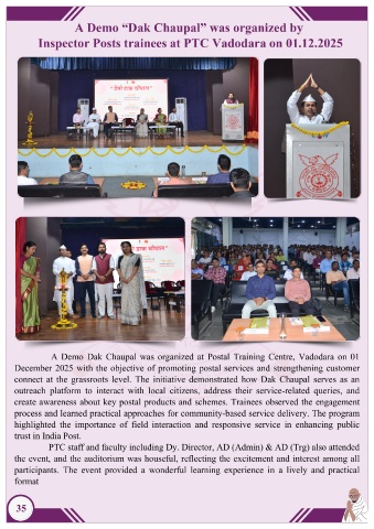A Demo Dak Chaupal was organized at Postal Training Centre, Vadodara on 01