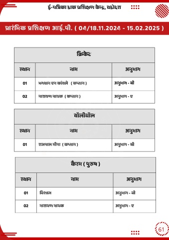 ारिभक श ण आई.पी. ( 04/18.11.2024 - 15.02.2025 )