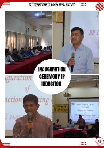 े ई-प का डाक श ण क , वडोदरा INAUGURATION I N A U G U R A T I O N CEREMONY IP C E R E M O N Y I P I T O N N I INDUCTION C U D 73
