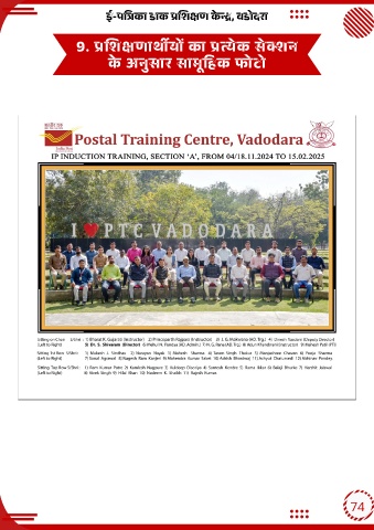 ई-प का डाक श ण क , वडोदरा े े 9. श णाथ य का क स न े क अनुसार सामू हक फोटो े 74