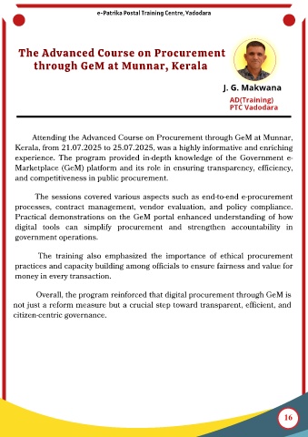 Attending the Advanced Course on Procurement through GeM at Munnar,