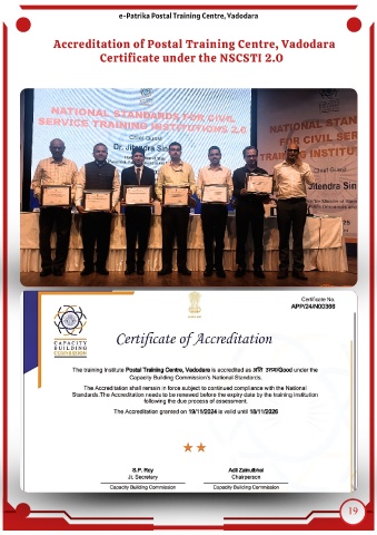e-Patrika Postal Training Centre, Vadodara Accreditation of Postal Training Centre, Vadodara Certificate under the NSCSTI 2.O 19