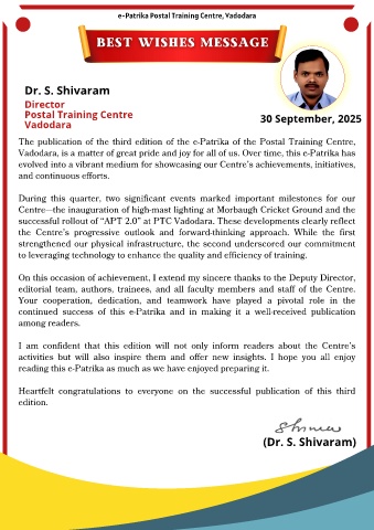 The publication of the third edition of the e-Patrika of the Postal Training Centre,