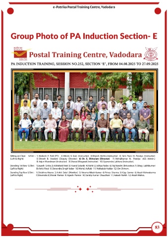 e-Patrika Postal Training Centre, Vadodara Group Photo of PA Induction Section- E 83
