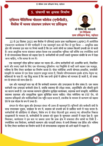 22 स 26 सतबर 2025 तक बकॉक म ए शयाइ प्रशात डाक महा व ालय (APPC) म आयो जत