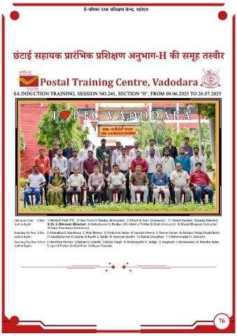 ई-प का डाक प्र शक्षण क े न्द्, वड़ोदरा ं छटाइ सहायक प्रार भक प्र शक्षण अनुभाग-H क समूह तस्वीर ं 76