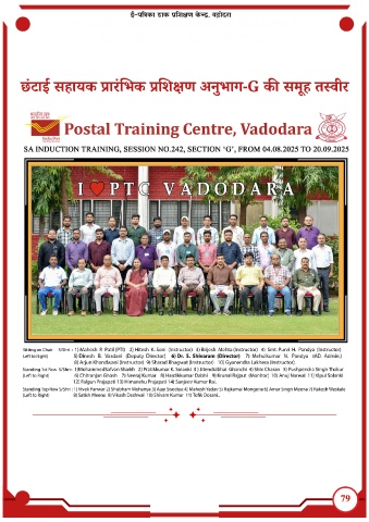 ई-प का डाक प्र शक्षण क े न्द्, वड़ोदरा 9. GROUP PHOTOGRAPHS OF TRAINEES ACCORDING TO EACHSECTION ं छटाइ सहायक प्रार भक प्र शक्षण अनुभाग-G क समूह तस्वीर ं 79