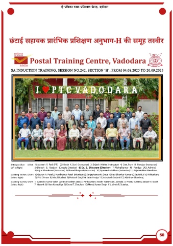ई-प का डाक प्र शक्षण क े न्द्, वड़ोदरा ं छटाइ सहायक प्रार भक प्र शक्षण अनुभाग-H क समूह तस्वीर ं 80