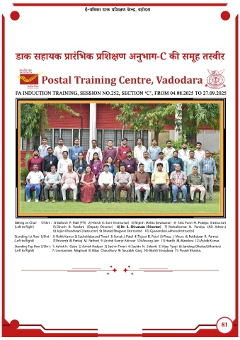 ई-प का डाक प्र शक्षण क े न्द्, वड़ोदरा ं डाक सहायक प्रार भक प्र शक्षण अनुभाग-C क समूह तस्वीर 81