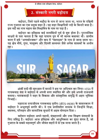 लए प्र सद्ध है । वड़ोदरा आज इितहास और आधुिनकता का सुदर सगम है, जो