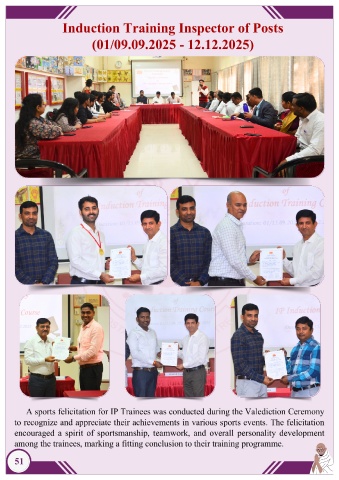 A sports felicitation for IP Trainees was conducted during the Valediction Ceremony